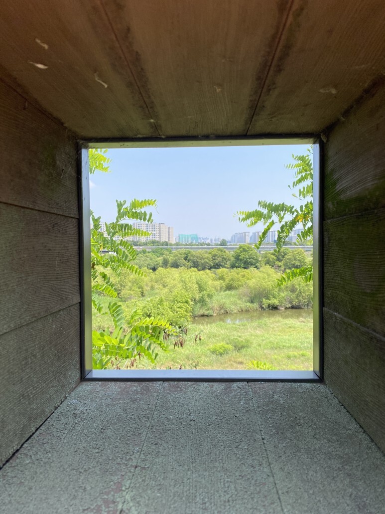 쉼터 맞은편 자전거 도로에 철새 도래지 탐조대가