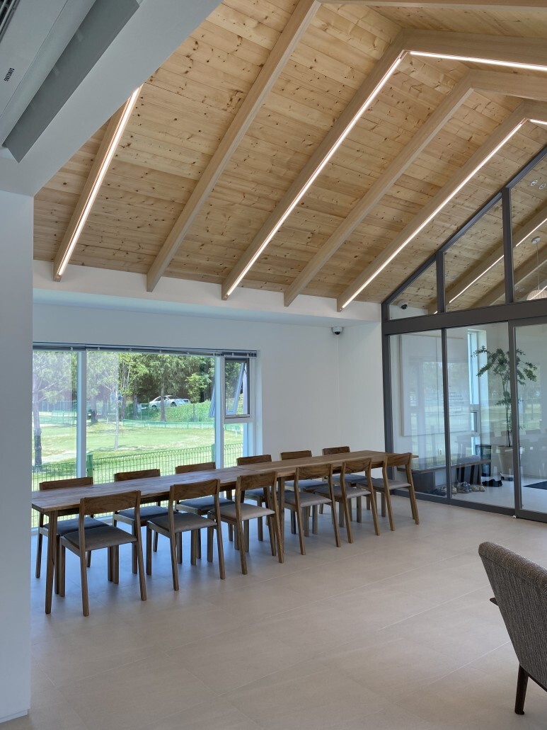 박공지붕 형태의 높은 천정 때문에 개방감이 느껴졌고,