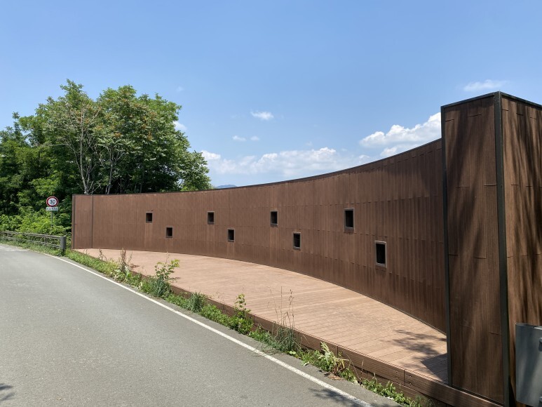 주변의 파크골프장의 푸른 잔디와 건물이 잘 어울리네요.